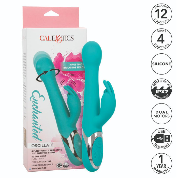 Enchanted Oscillate Rotating Head Thrusting Rabbit Vibrator - Teal