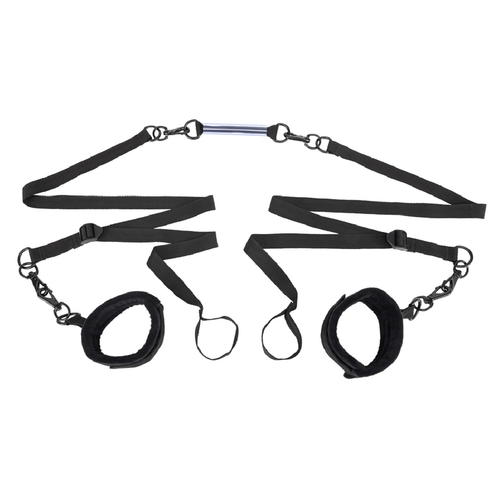 Perfect positioning deserves perfect pairings with the Pivot™ Connection Kit! Two included adjustable tethers and cuffs help provide additional play options with both restraint and added support for both wrists and ankles in any play. With the addition of a plastic handled grip, the Accessory Kit is pivotal for the user to expand their pleasure in new ways that embrace their natural movements with the versatility of every Pivot™ product.