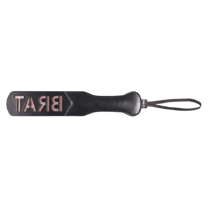 Have you been bad? Provoke them to leave their mark with the Brat Paddle, designed to imprint the word BRAT with delicious thuddy impact. Before you know it, you'll be begging for another spanking. Made with multiple layers of high-quality, faux leather for added impact and a wrist loop for a quick grip or easy display:
