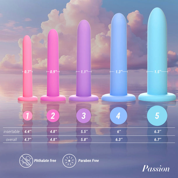 This gently tapered dilator set comes in five graduated sizes so you can comfortably work your way up. They are made from silky smooth silicone that is body safe, non-porous and easy to clean for your ultimate pelvic health and wellness.