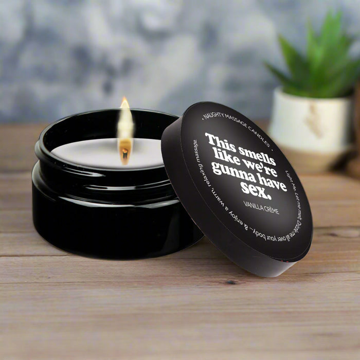 This Smells Like We're Gunna Have Sex. Indulge in erotic sensual massage and tell them what you want ... with this naughty massage candle. A warm, melty, coconut oil based massage candle with a naughty message and the delicious scent of vanilla crème that leaves skin smelling like a fresh-baked vanilla cupcake!